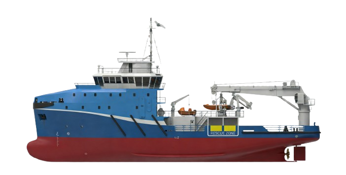 This vessel serves diving and heavy cargo operations, with a 345 m² deck and 300-ton cargo capacity. Powered by Cummins gensets and thrusters, it reaches 12.0 kn and accommodates 60 crew. It features a decompression chamber, diving gear, and navigation systems, certified by BV for unrestricted service.